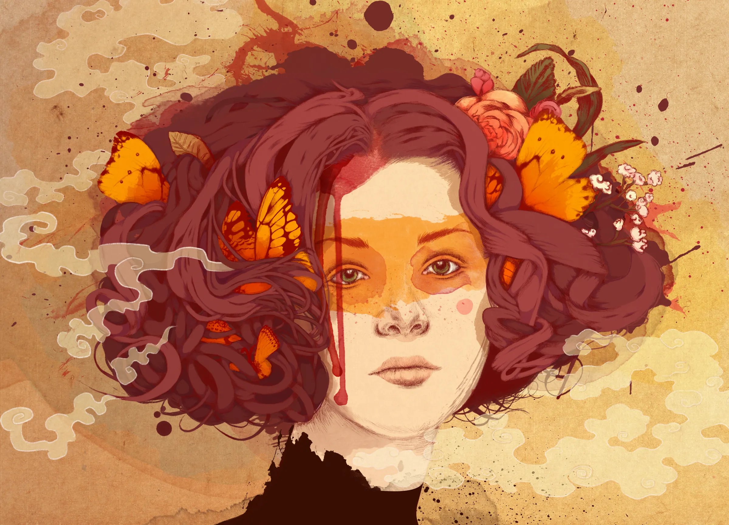 This series of custom digital fantasy illustrations was created as an exploration of feminine portraits intertwined with nature, drawing inspiration from the fauna and flora of different regions, such as America’s Pacific Northwest and the northern coast of Spain (La Coruña). Each piece was carefully crafted to evoke a surreal yet organic aesthetic, merging traditional and digital techniques.