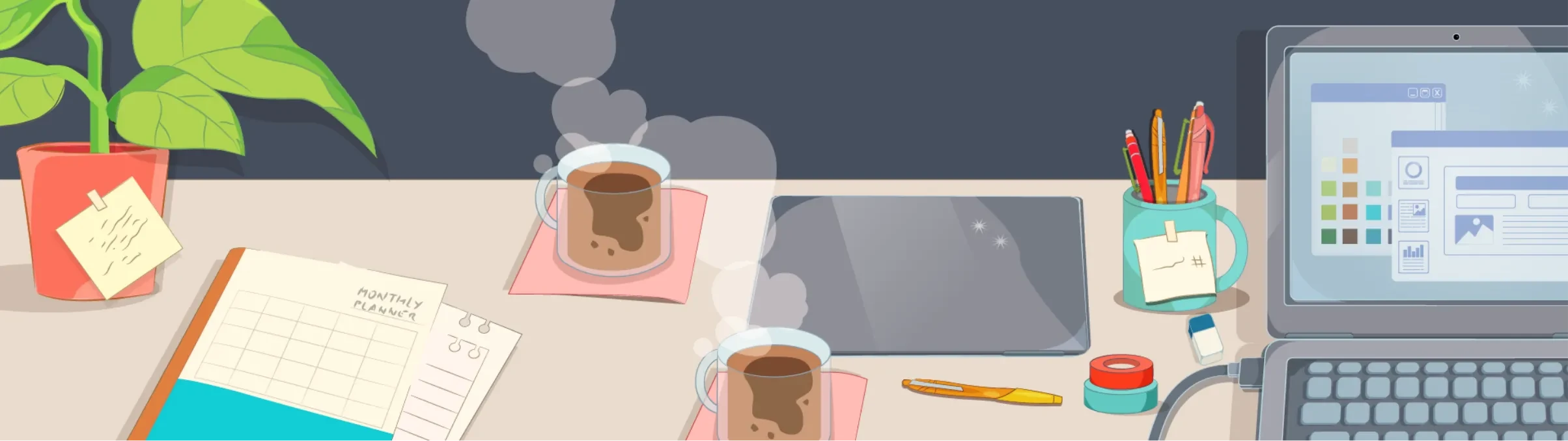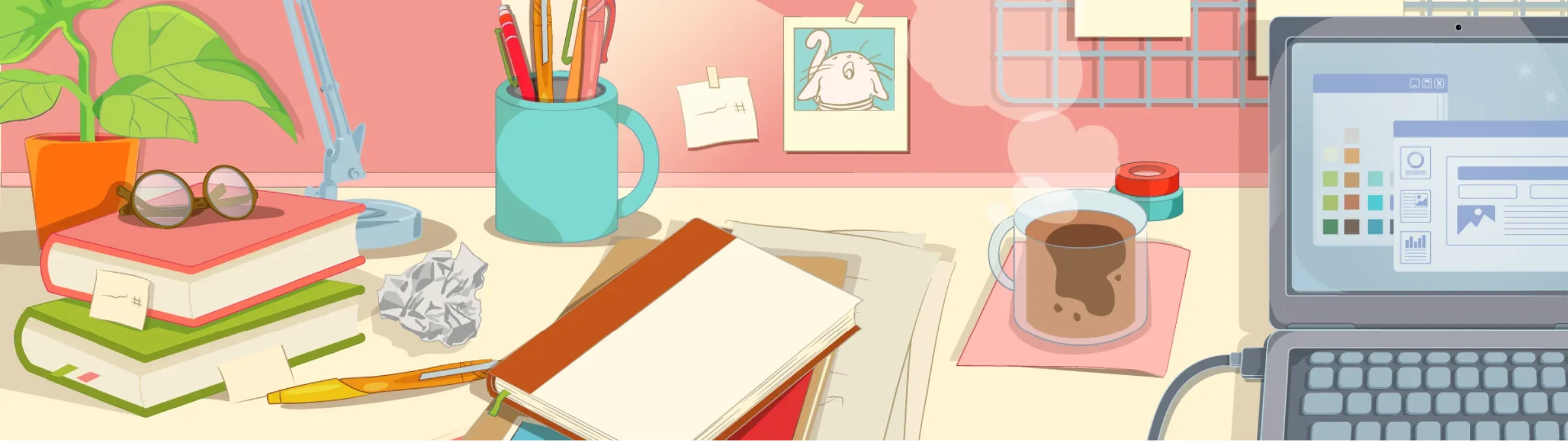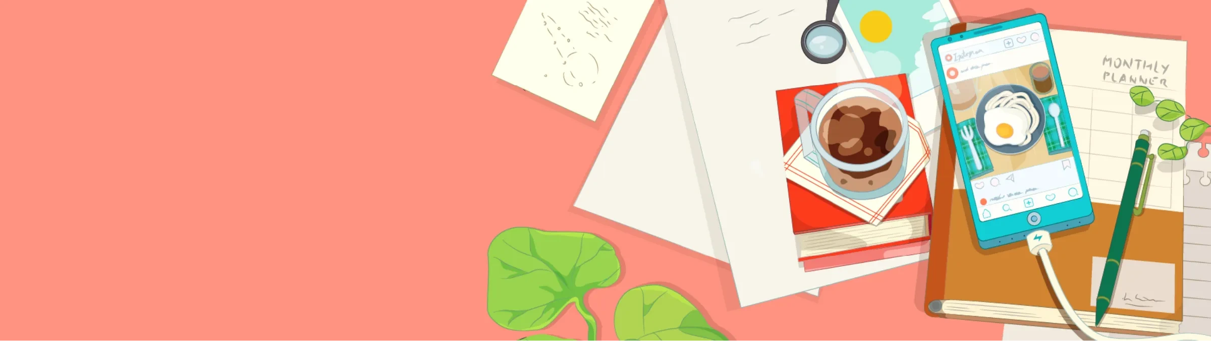 Storytelling Banners: Full-width visuals with or without backgrounds, used to open lessons or introduce visual pauses.