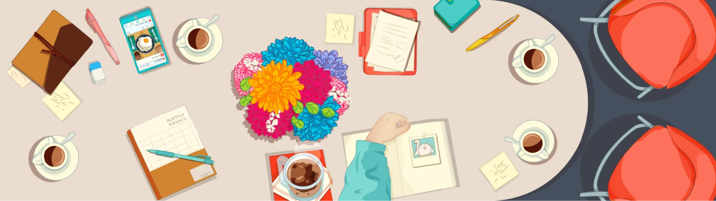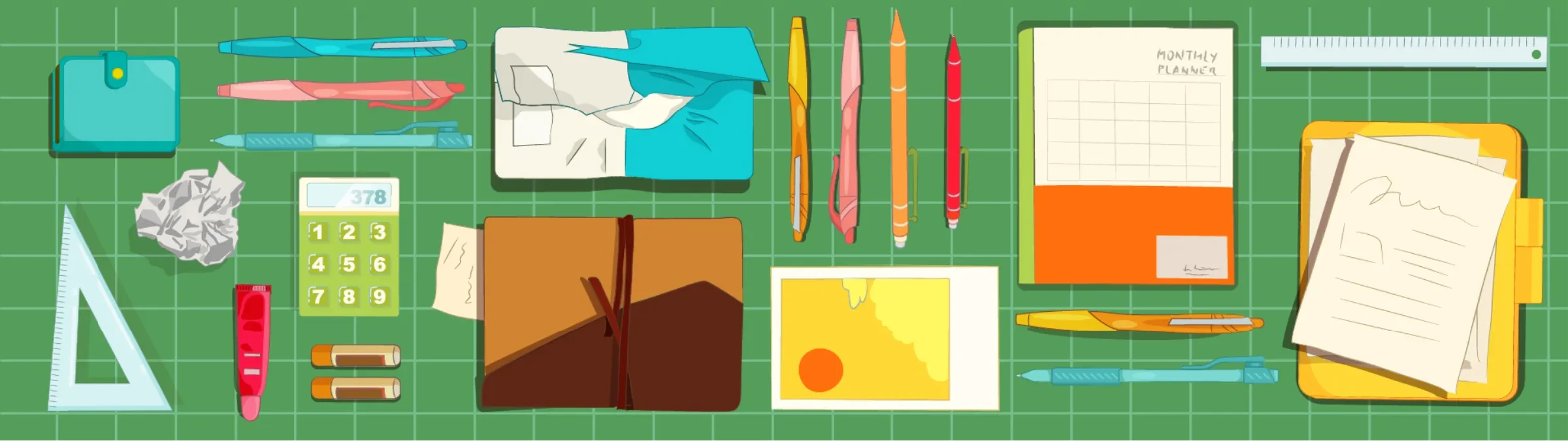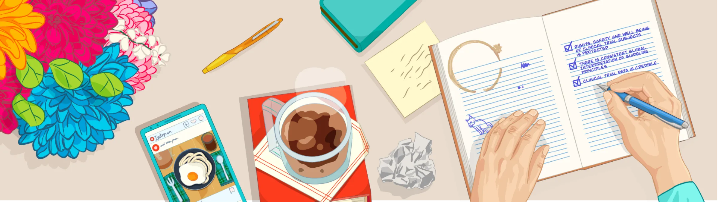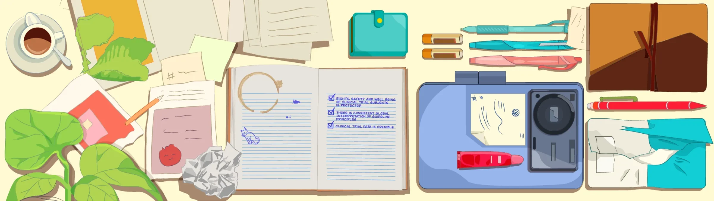 To make the dense, mandatory content more approachable, I used everyday office objects and stationery as narrative tools. These familiar elements helped create visual pauses between complex sections, reinforced the storytelling, and fostered a sense of intimacy without relying solely on characters. Combined with techniques like close-ups, organic shapes, warm colors, and transparency, this approach humanized the experience.