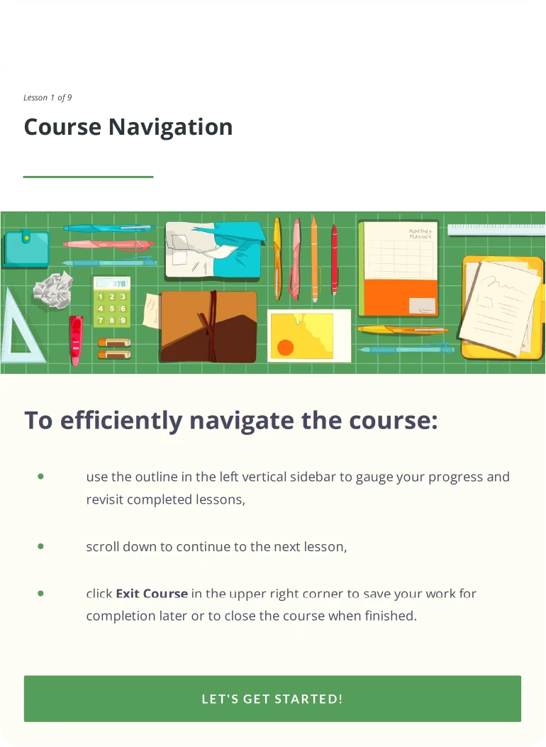 To support dense regulatory content, I developed a system of abstract, geometric illustrations designed to clarify complex concepts without relying on traditional icons. These visual elements were modular and interchangeable, including not only the illustrations themselves but also supporting background shapes and objects. This allowed for flexible composition across multiple courses while maintaining consistency and enabling quick adaptation to new materials as the design system evolved. It also contributed to balancing information density with visual breathing room.