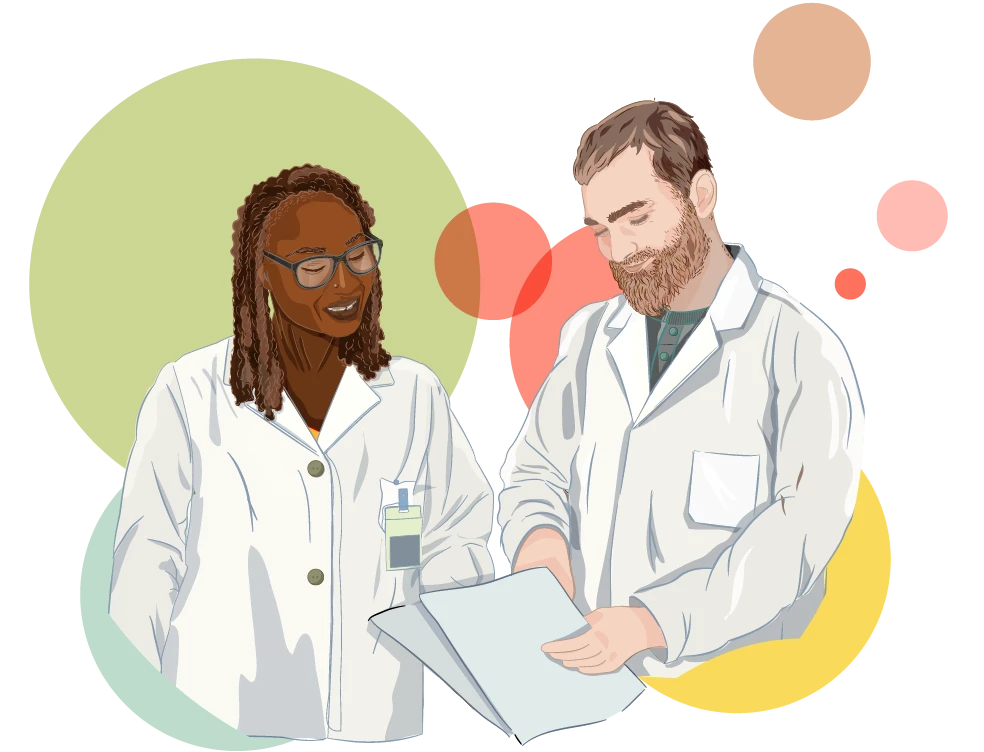 Representations of medical staff, clinical trial participants, and patients in a respectful, humanized way. These visuals add empathy and relatability to healthcare communications.